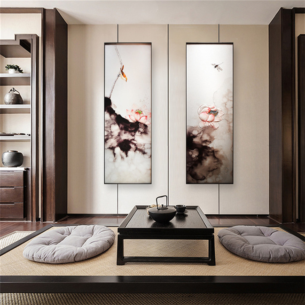 Peinture moderne en verre incrustée de doublure de Lotus incrustée de style moderne